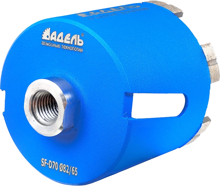Алмазная коронка для подрозетников по железобетону Адель Super Fast SF-D70 82/65 мм (Adel Супер Фаст СФ-Д70 82/65 мм) предназначена для скоростного сверления железобетона (армированного бетона), бетонных блоков, газобетона, кирпича и других строительных материалов с использованием ручного электроинструмента без охлаждения водой.
