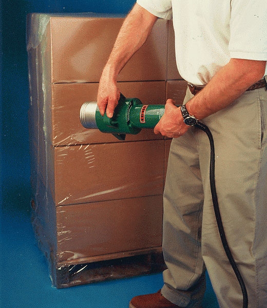- Отлично подходит для усадки термоусадочной пленки на палетах и габаритных грузах без использования открытого огня