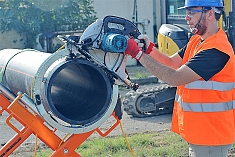 - Процесс резки выполняется непосредственно на рабочей площадке после установки необходимых зажимов в соответствии с диаметром трубы