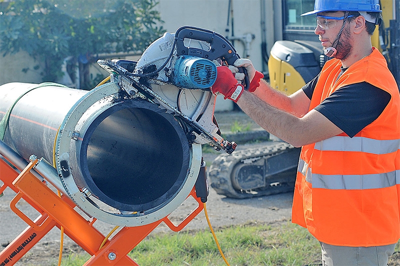 - Идеальное решение для резки пластиковых труб на стройплощадке, где безопасность остается одним из наиболее важных моментов, время резки является ключевым фактором производительности: с целью объединить эти два аспекта разработана инновационная портативная труборезная пила для резки труб на стройплощадке