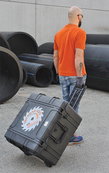 Автоматический электрический труборез для резки пластиковых труб Ritmo Topgear 630 (Ритмо Топгир 630) – автоматическая электрическая дисковая пила для резки полиэтиленовых (пэ / pe, пнд / hdpe), полипропиленовых (пп / pp) и других полимерных труб Ø 250 – 630 мм (10" – 24" IPS, 8" – 20" DIPS), толщиной стенки до 80 мм (3,15"), на любых строительных площадках и в полевых условиях.