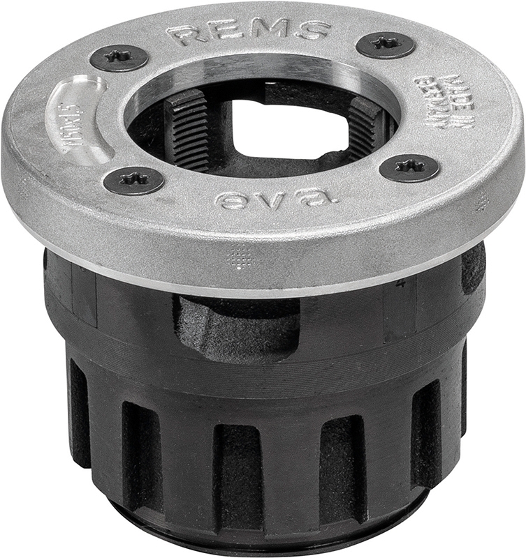 Быстросменная резьбонарезная головка Rems Eva M50×1,5 (Ремс Ева М50×1,5) предназначена для нарезки правой трубной метрической резьбы M (EN 60423) с шагом 1,5 мм на электроизоляционных трубах Ø 50 мм с применением ручных и электрических резьбонарезных трубных клуппов Ева, Амиго, Амиго 2, Амиго 2 Компакт.