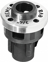 Быстросменная резьбонарезная головка Rems Eva S R 3/4" (Ремс Ева С Р 3/4") предназначена для нарезания правой трубной конической резьбы R (ISO 7-1, EN 10226 (DIN 2999, BSPT)) на стальных трубах Ø 3/4" в труднодоступных местах, например, в углублениях стен, на выпусках труб, в шахтах, с применением храпового рычага Ева 1/8"-2". Идеальна для ремонта, реставрационных работ.