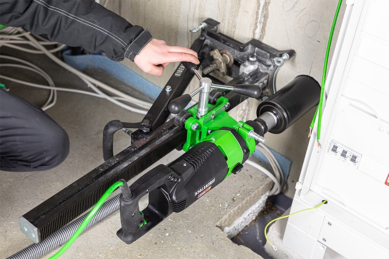 - Ручное и стационарное сверление отверстий в стенах и потолках систем водоснабжения, отопления и вентиляции, где мокрое сверление невозможно (в случаях, когда сверление с использованием воды невозможно)