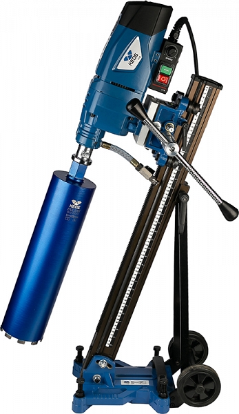 Двигатель алмазного бурения Keos KS-250 (Кеос КС-250) предназначен для сверления бетона, железобетона, кирпича, асфальта и других твердых материалов алмазными коронками Ø до 250 мм с использованием стойки (штатива).