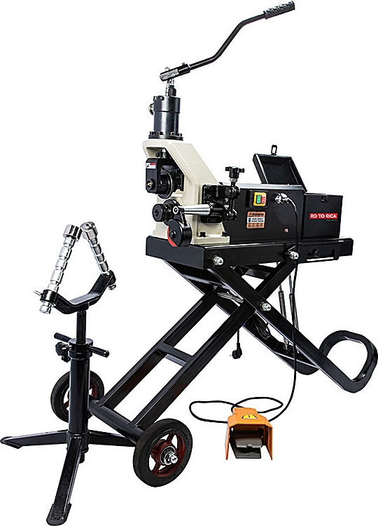 - Полная комплектация всем необходимым для работы: в комплектацию входят сменные прижимные валы с накатными роликами, опора для труб, ножная педаль пуска, набор необходимых инструментов