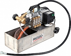 Электрический испытательный гидравлический опрессовщик Ridgid 1460-E (Риджид 1460-Е) – опрессовочный насос электрический для испытания под давлением до 25 бар (дополнительно имеется блок управления до 60 бар) широкого спектра гидравлических систем на отсутствие течи, в том числе систем сжатого воздуха и отопления, противопожарных спринклерных систем, холодильных и масляных систем, а также трубопроводных систем небольщого диаметра, в которых применяется масло, вода или смесь этиленгликоля и воды.