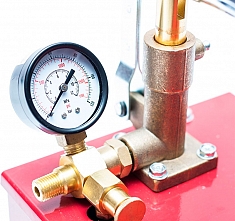 - Постоянство давления в испытываемой системе обеспечивается 2-мя клапанами и вентилем с шаровыми запорами