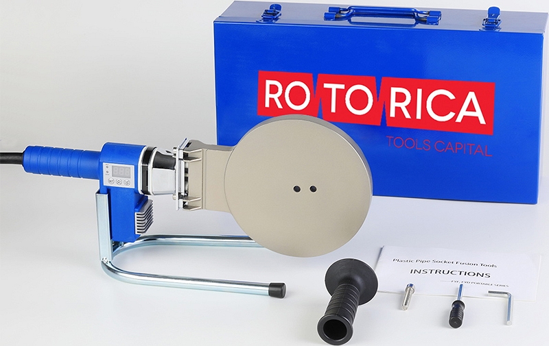 Паяльник для полипропиленовых труб Rotorica Rocket Welder 160 Blue серия Top (Роторика Рокет Велдер 160 Блю серия Топ) с цифровой регулировкой температуры предназначен для раструбной сварки PP-R (ПП-Р), PB (ПБ), PE (ПЭ), PVDF (ПВДФ) труб Ø 16 – 160 мм.