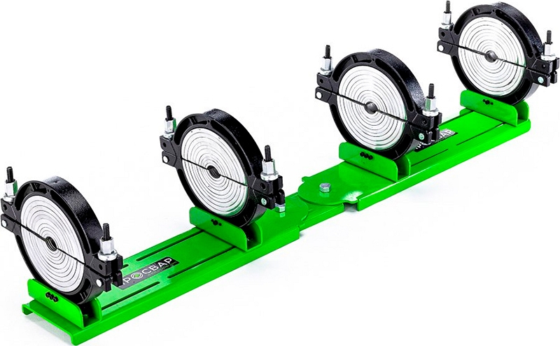 - 4-х зажимный: 4 специальных регулируемых зажима с вкладышами фиксируют трубы в 4-х точках и не допускают их смещения из стороны в сторону, что обеспечивает высокую точность позиционирования и прочность сварного шва