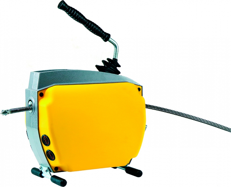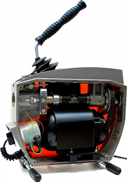 - Мощный индукционный двигатель (750 Вт, 1 л.с.) обеспечивает агрессивный крутящий момент, способный вращать прочистные спирали длиной до 60 м в канализационных трубах Ø до 150 мм