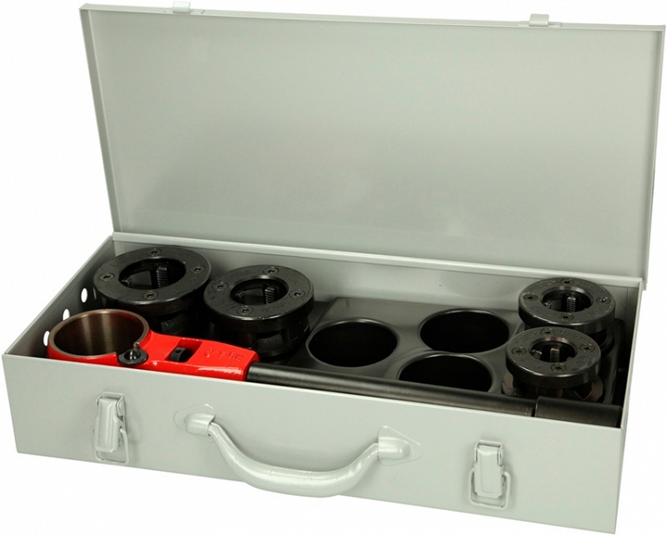- Храповый рычаг Central 1/8" – 1 1/4" (10 – 40 мм), быстросменные резьбонарезные головки Central M 20, 25, 32, 40 (×1,5), в прочном стальном кейсе.