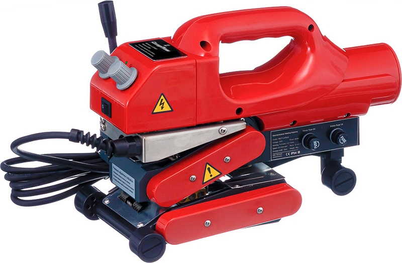 Сварочный автомат горячего клина СварПом СП33 1100 Вт (SvarPom SP33 1100 W) – автоматический сварочный аппарат горячего клина для высокопроизводительной сварки внахлест горячим клином полимерных гидроизолирующих покрытий и геомембран толщиной 0,5 – 2 мм, изготовленных из таких материалов, как ПЭНД, ПЭВД, ПП, ТПО и ПВХ (для сварки гидроизолирующей ПВХ мембраны, медный горячий клин легко меняется на стальной), при строительстве подземных и гидросооружений.
