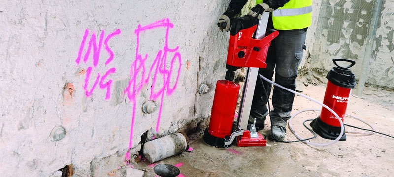 Установка алмазного бурения Hilti DD 160 (Хилти ДД 160) предназначена для сверления отверстий в бетоне, каменной кладке, кирпиче, камне, железобетоне, минеральных и абразивных материалах Ø 8 – 202 мм. Используется для влажного бурения в бетоне с использованием систем сверления на станине для установки труб, используемых в системах водоснабжения, отопления и кондиционирования воздуха; серийного бурения для монтажа кабельных лотков и вентиляционных каналов; бурения несквозных отверстий для установки анкеров большого диаметра и арматурных стержней, а также для монтажа поручней и ограждений.